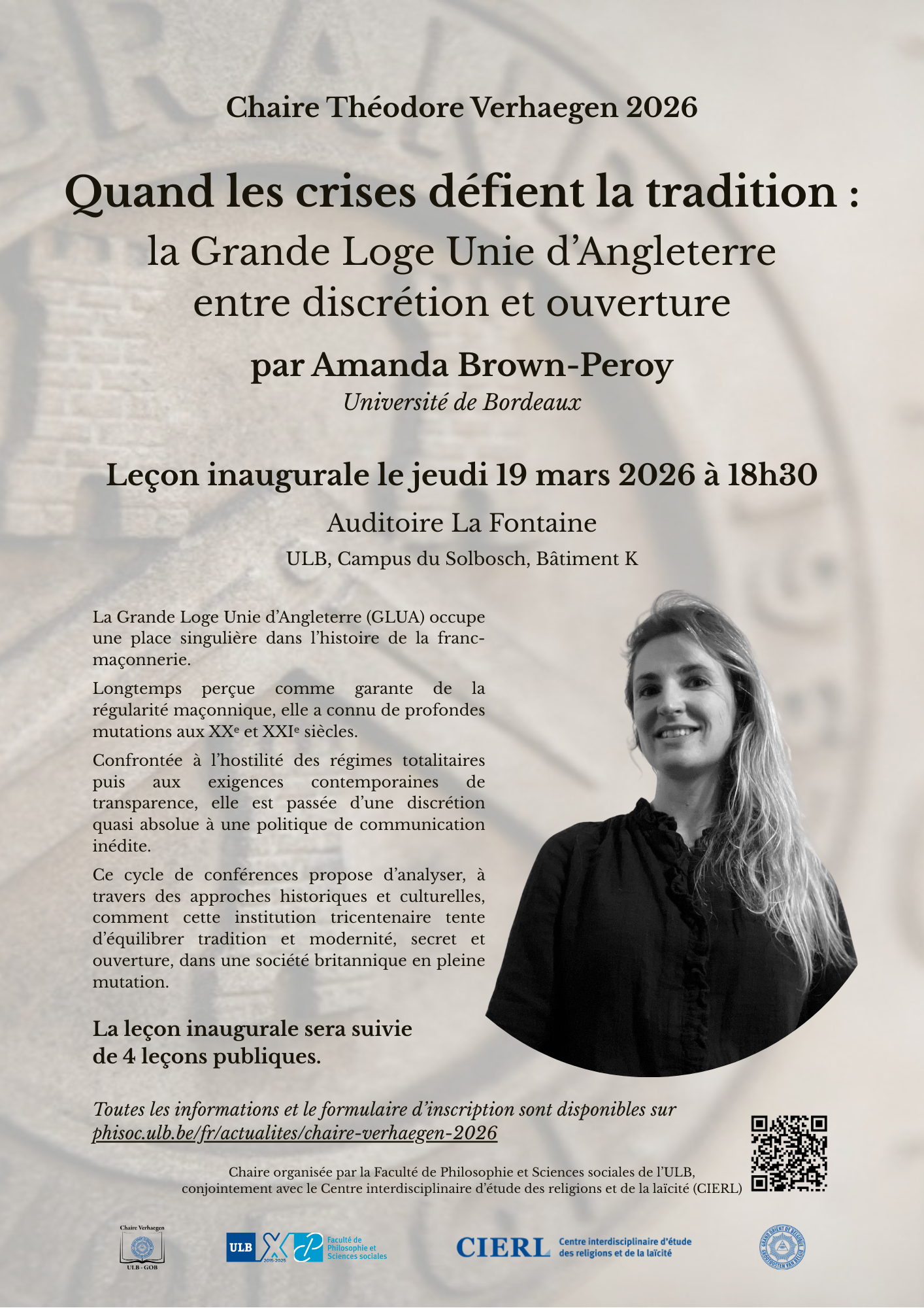 Leçon inaugurale le jeudi 19 mars 2026 à 18h30, Auditoire La Fontaine (ULB, Campus du Solbosch, Bâtiment K)