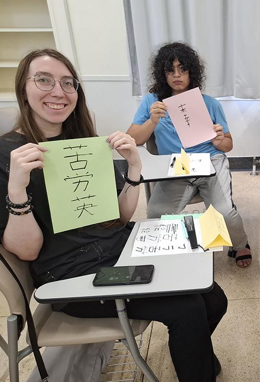 Le professeur de japonais nous parlait en japonais pendant les trois heures de cours. La première semaine a été difficile, mais intéressante. Il y avait beaucoup d'activités ludiques pour apprendre, comme la calligraphie, des jeux pour enfants et l'écriture de noms en kanji. On pouvait choisir celles qui nous intéressaient.