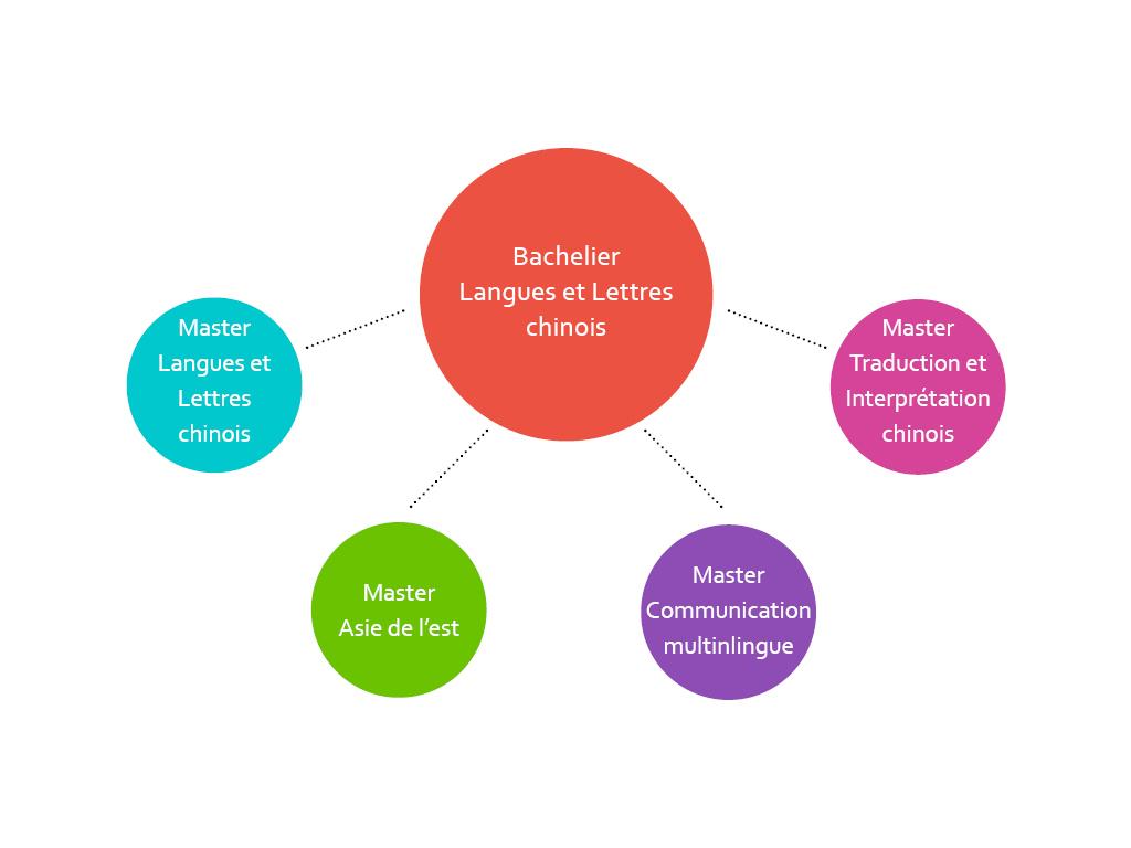- Dans la continuité du Bachelier de Langues et Lettres en chinois, il met l’accent sur le développement d’excellentes de capacités de communication en chinois et dans la langue germanique de ton choix.