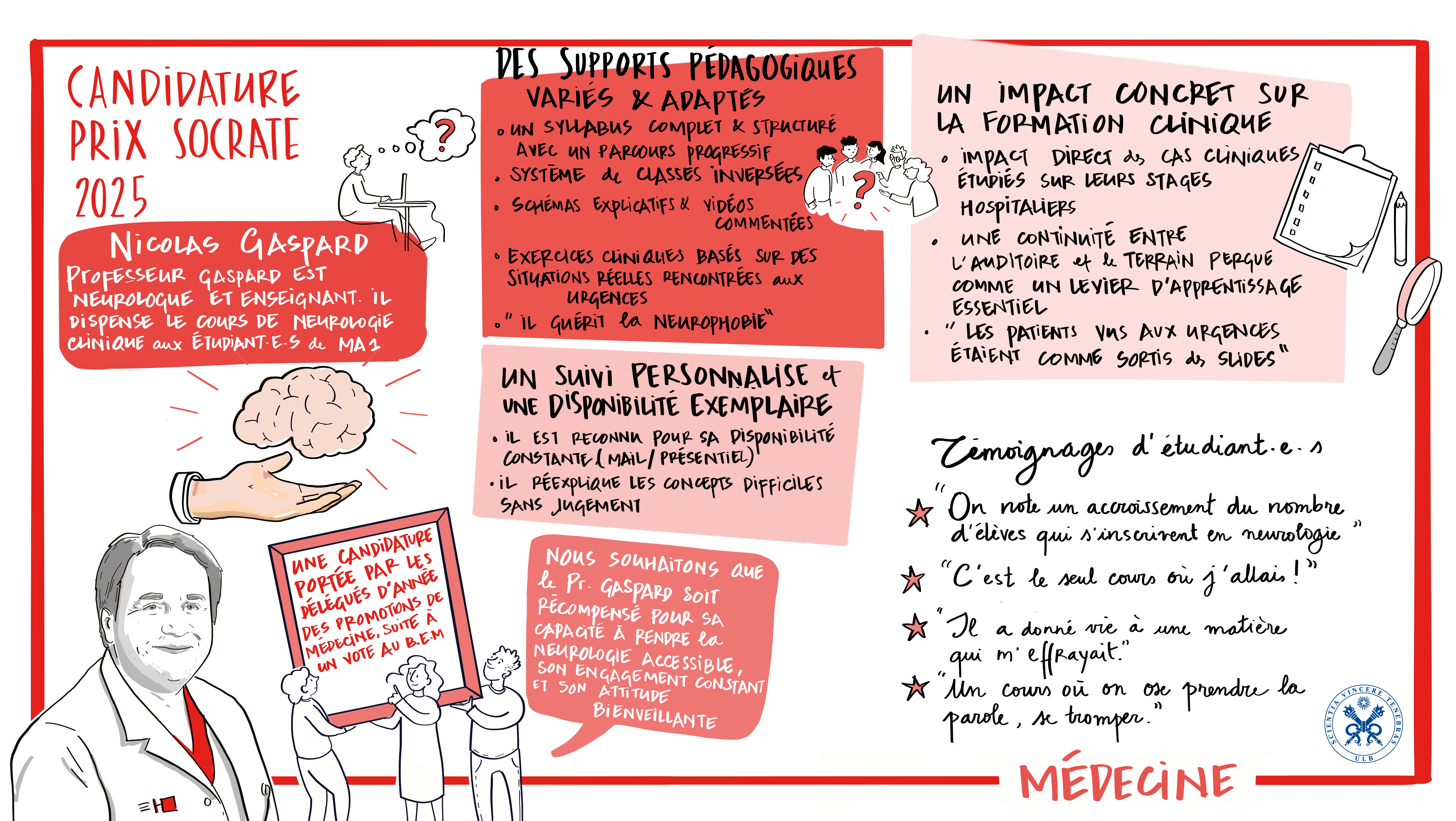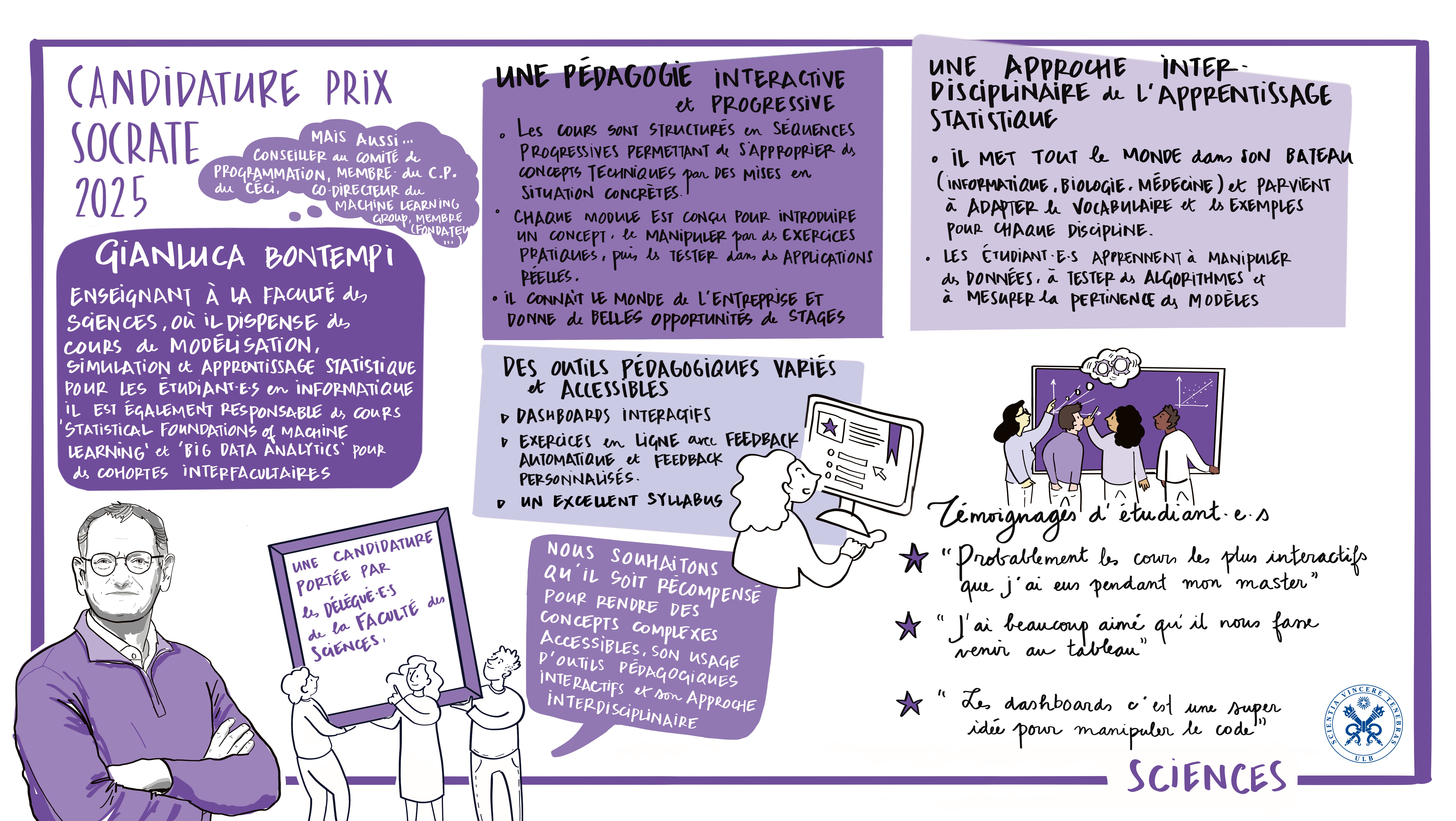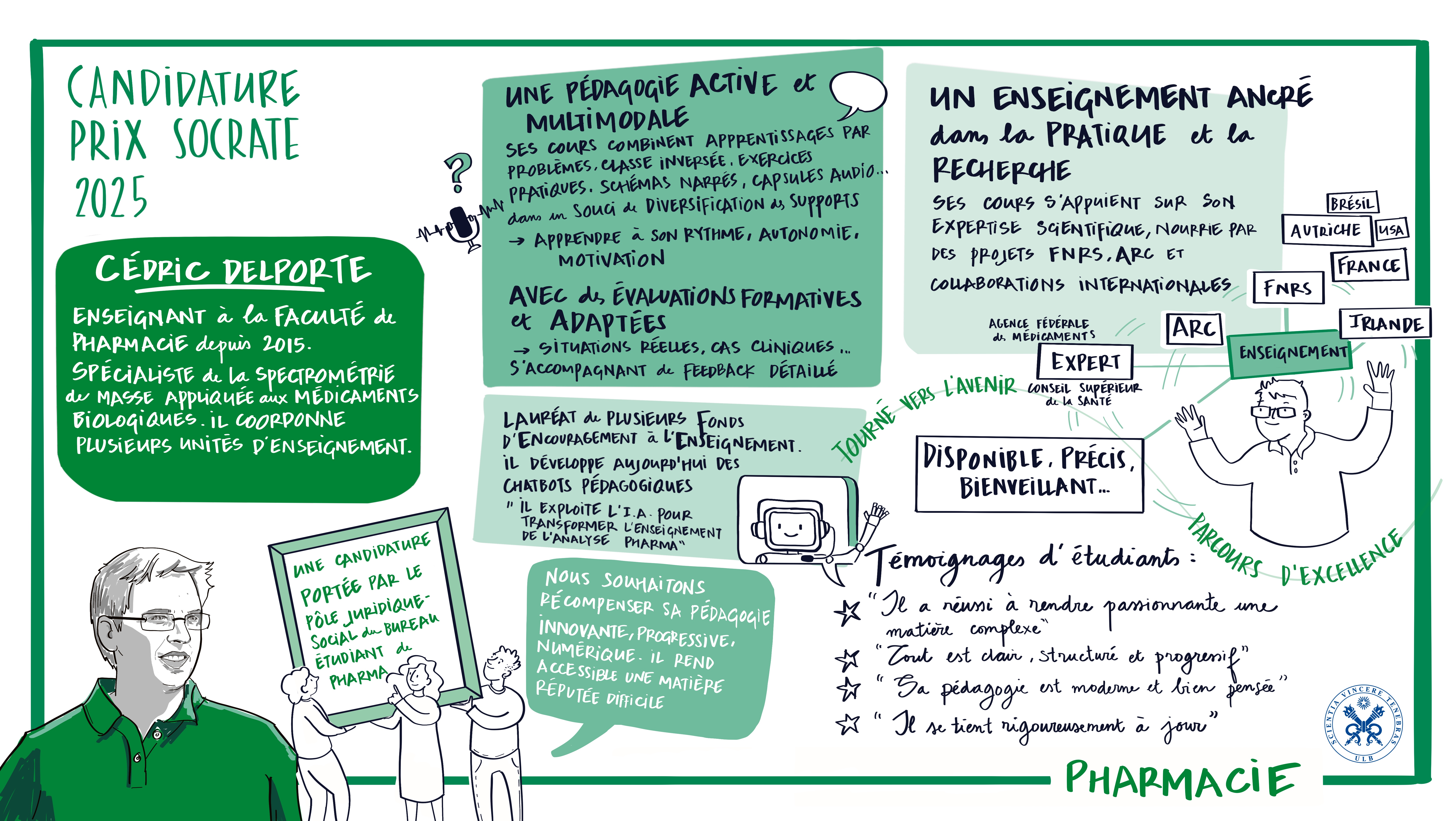 - Humilité et disponibilité : Les étudiant·e·s soulignent sa capacité à reconnaître ses limites, à se remettre en question et à collaborer avec ses collègues pour offrir la meilleure expérience possible