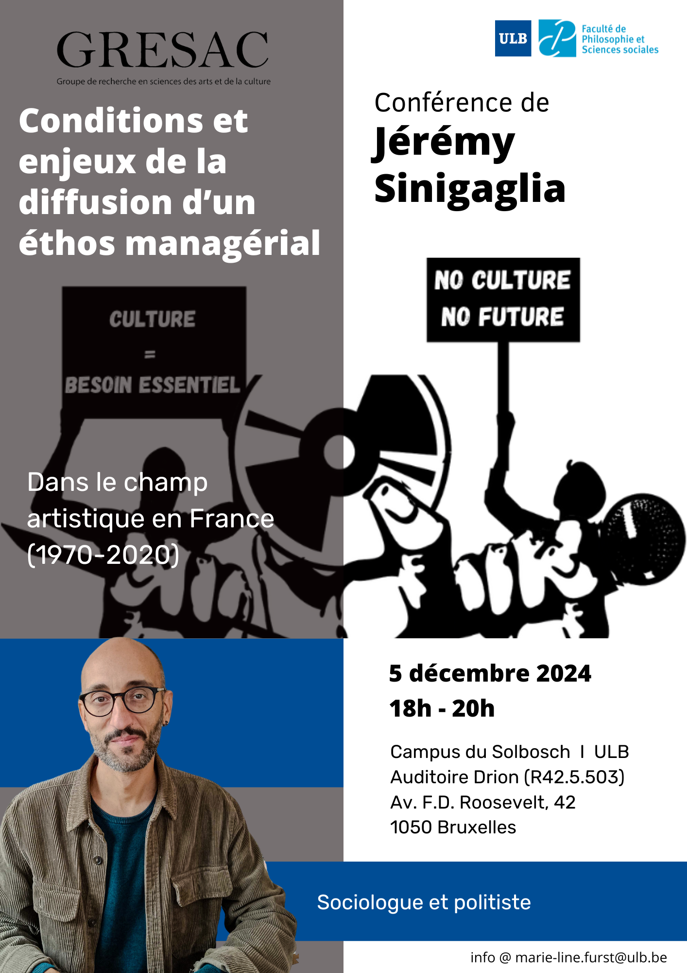 La conférence vise à mettre en relation la redéfinition contemporaine des politiques culturelles, amorcée dans les années 1970 en France, et la transformation des pratiques des agents du champ artistique, en particulier des artistes du spectacle vivant et des arts visuels. L’hypothèse défendue est que le « tournant économique » et plus précisément « managérial » de l’action publique culturelle à tous les niveaux de l’État, renforcé par la construction d’un champ de la formation au « management culturel », a contribué à reconfigurer le champ artistique et à transformer les dispositions de ses agents : agents administratifs des services culturels des collectivités, intermédiaires du travail artistique (chargés de production, de diffusion, etc.) et artistes dans les domaines du spectacle et des arts visuels, conduits à se comporter comme des entrepreneurs de leur propre carrière. Ce nouvel impératif, valorisant les « conduites stratégiques » et impliquant l’acquisition de « dispositions rationnelles » (au sens de Bourdieu), engendre un renforcement des inégalités de carrière (de classe et de genre notamment) au sein des professions artistiques. Au-delà du cas des artistes, la conférence sera l’occasion d’aborder une question plus large : comment les politiques (publiques) forment et transforment les dispositions de leurs destinataires.