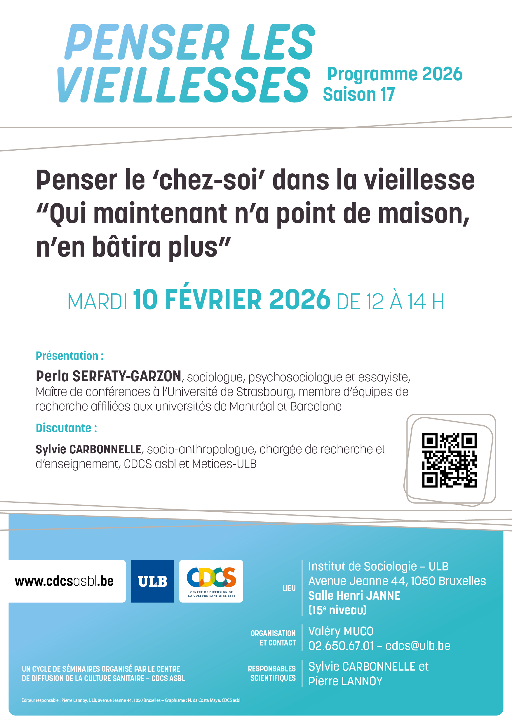 Le Centre de Diffusion de la Culture Sanitaire asbl accueille Perla Serfaty-Garzon dans son Séminaire Penser les vieillesses