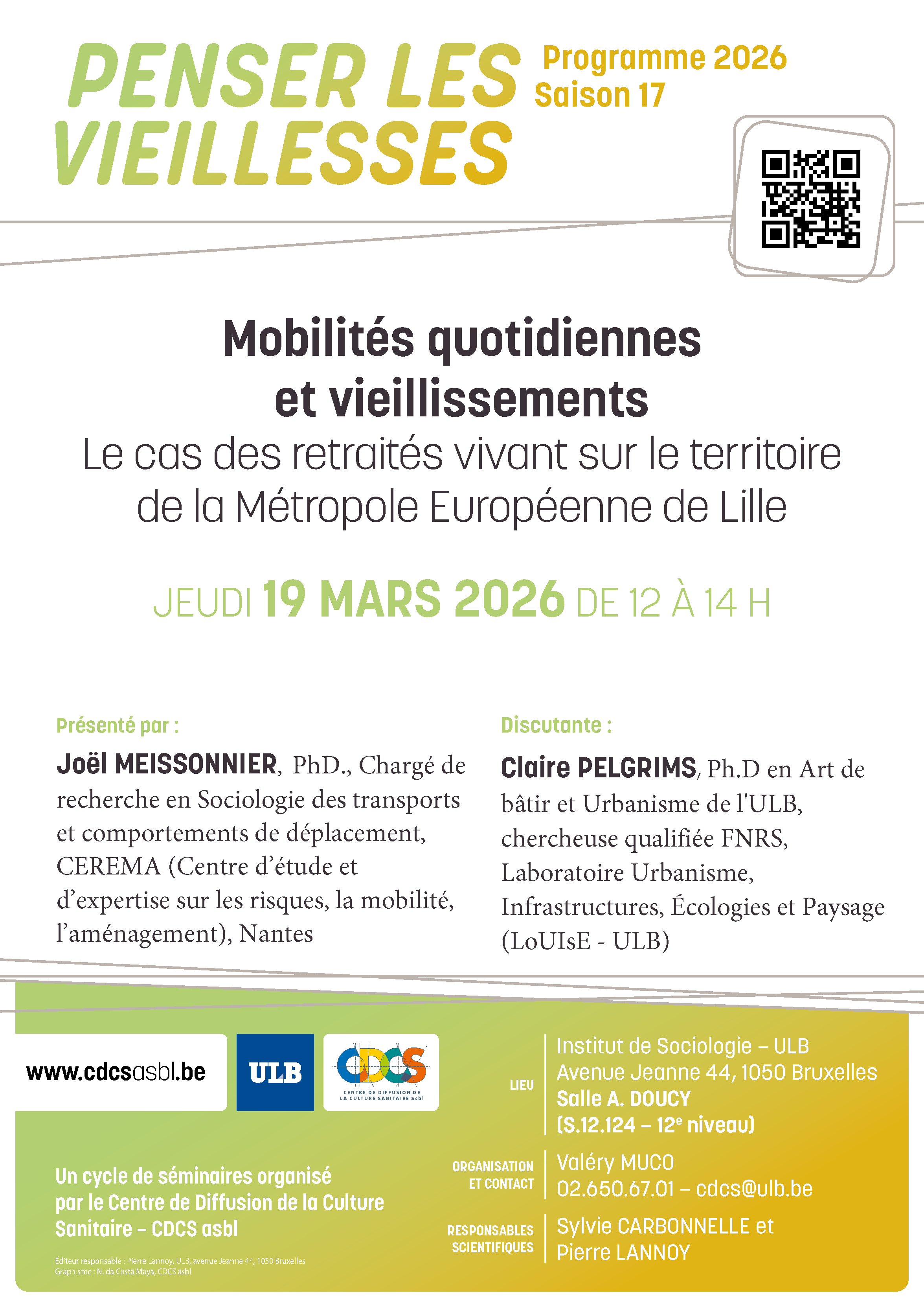 Séminaire du CDCS asbl : Mobilités quotidiennes et vieillissements - Le cas des retraités vivant sur le territoire de la Métropole Européenne de Lille avec Pierre MEISSONNIER