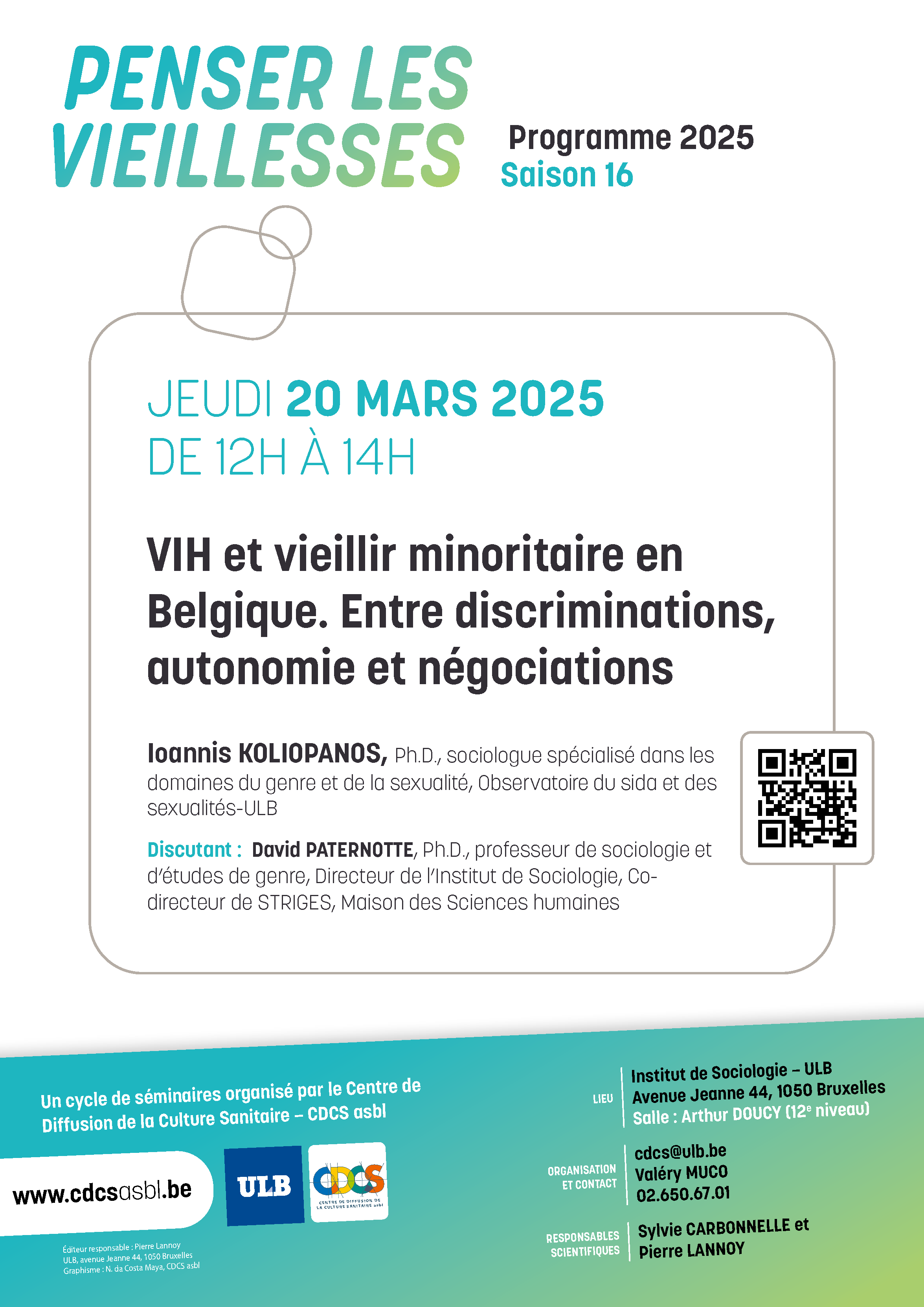 À partir d'une enquête qualitative par entretiens et observations menée en 2024 auprès de personnes vivant avec le VIH en Belgique et ayant plus de 50 ans, Koliopanos s’est penché sur l’intersection des catégories épidémiologiques — hommes ayant des rapports sexuels avec des hommes (HSH), travailleuses du sexe (TDS), usagers de drogues injectables (UDI), personnes issues de la migration subsaharienne — avec différents rapports sociaux (genre, race, classe, sexualité), l’âge et le statut sérologique. Les résultats révèlent une grande diversité de trajectoires, marquées par des inégalités notables entre les individus intégrés dans des réseaux communautaires et ceux en marge de ces réseaux. Ces derniers sont notamment confrontés à un isolement social et à des difficultés liées au dévoilement de leur séropositivité.
