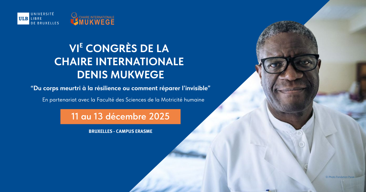 - L’ULB accueille le congrès de la Chaire Denis Mukwege : trois jours pour réfléchir, échanger et agir contre les violences faites aux femmes et aux filles25 novembre 2025Du jeudi 11 au samedi 13 décembre 2025, l’Université libre de Bruxelles accueillera sur son campus Erasme le 6ᵉ Congrès de la Chaire Internationale du Dr Denis Mukwege, "l’homme qui répare les femmes". Cet événement ne sera pas seulement scientifique : c’est un appel à l’engagement, à la réflexion et à l’action. Une invitation à écouter, accompagner et reconstruire, corps et esprit réunis.